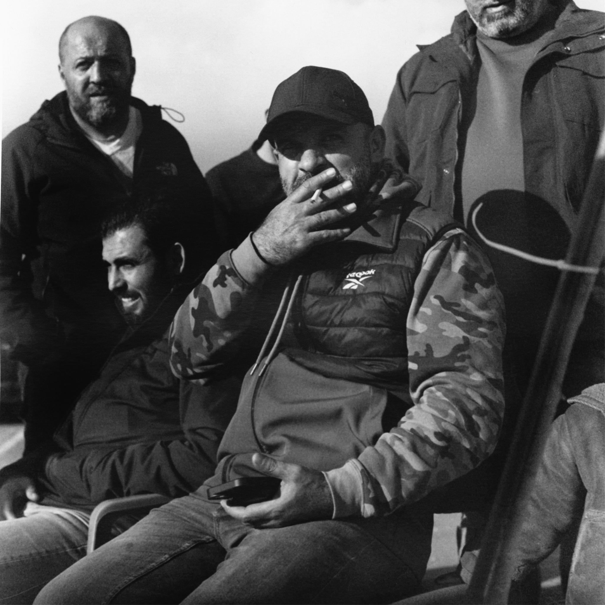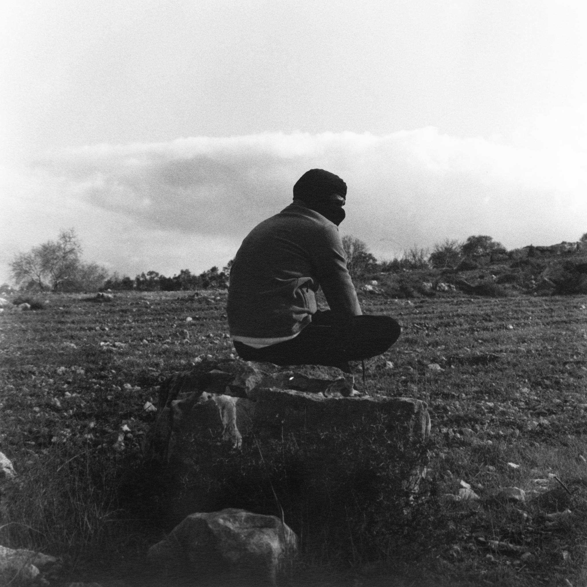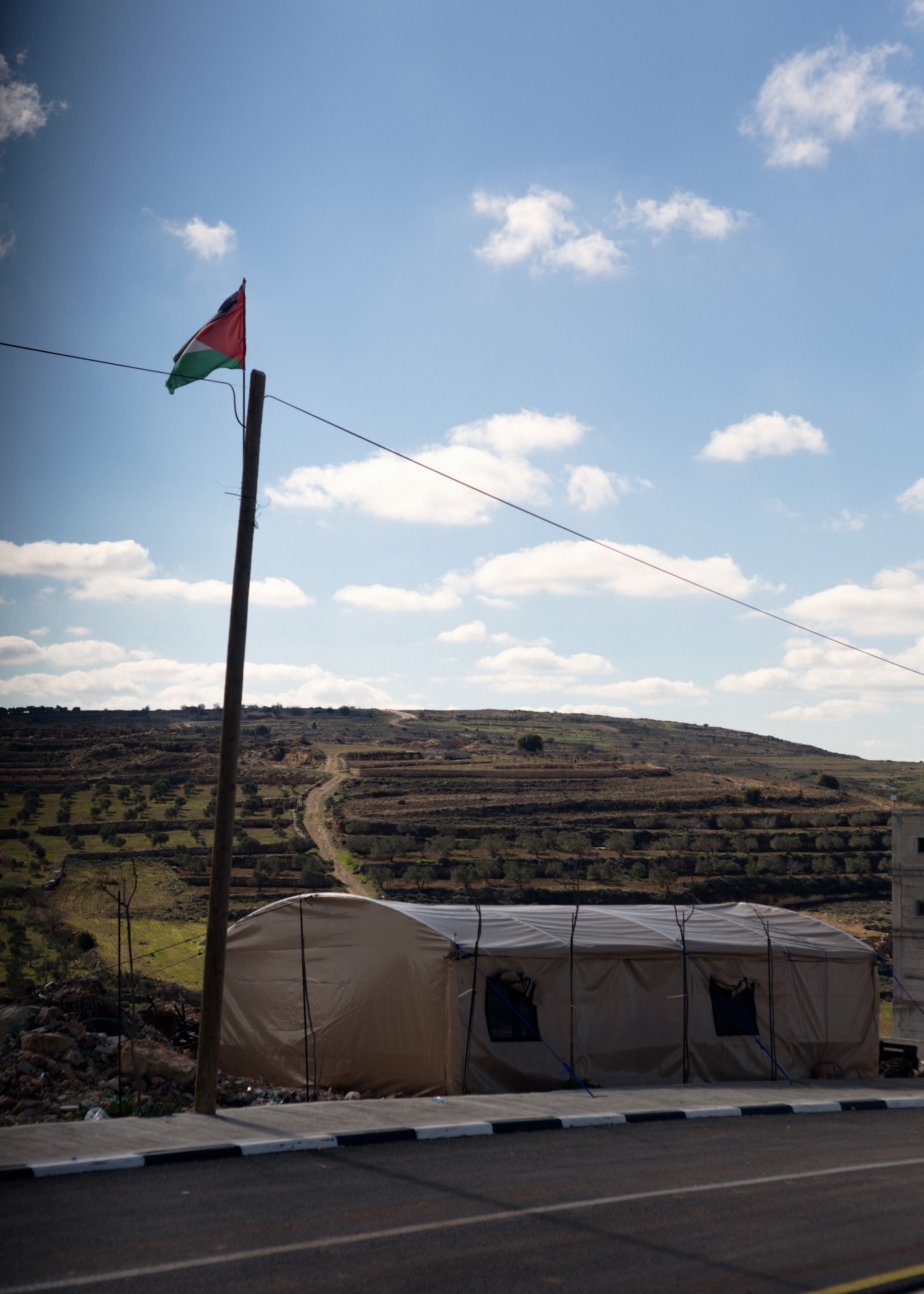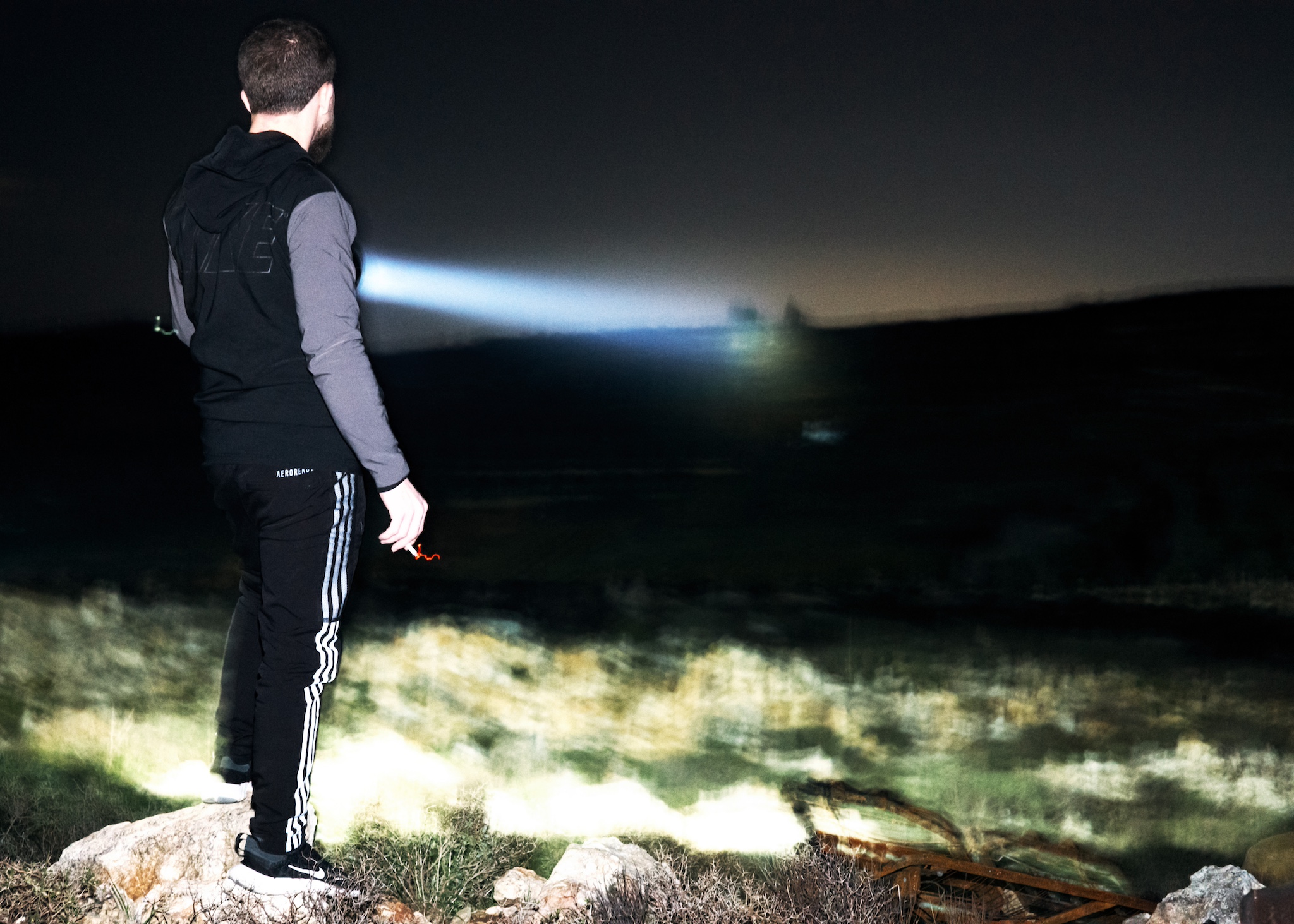Every few minutes, one of the men leaves the smokey atmosphere of the tent to brave the cold. Standing atop piles of coffee grounds and hundreds of empty energy drink cans, he traces the ridge with a high-powered flashlight, looking for changes in the landscape of rocks, abandoned structures, and rows of olive trees.