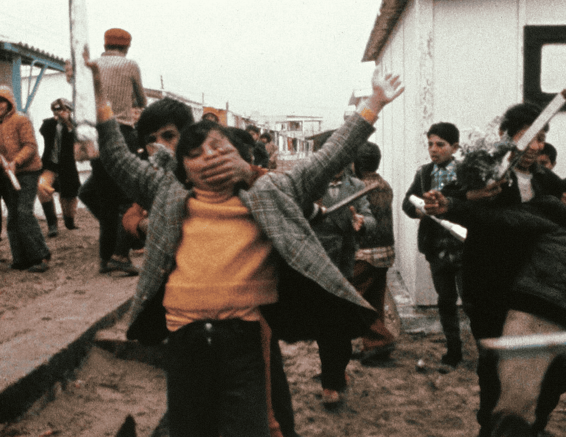 Jocelyne Saab: To go out to film, to witness, as soon as the planes had passed over. To buy boxes of cheese like ‘Laughing Cow,’ to find gasoline and water. To go get dinner from the two or three restaurants that were open. It was like we were telling ourselves a story. We created for ourselves the illusion that we were continuing to live a “normal” life. To save people, to film, to find what remained, to find out what was going on, to assure ourselves that others were still alive. I had my car and I would spend every day at the headquarters of the PLO to stay informed about the situation. In the city there was hardly enough to eat, the misery of extreme poverty and hunger was pervasive. Among our group, there were about fifty artists and intellectuals. One of us was assassinated. As we were leaving a restaurant, a car went into a fishtail spin, some guys came out and started shooting — our friend was killed in a barrage of machine-gun fire because he had been distributing water to the entire city under siege.