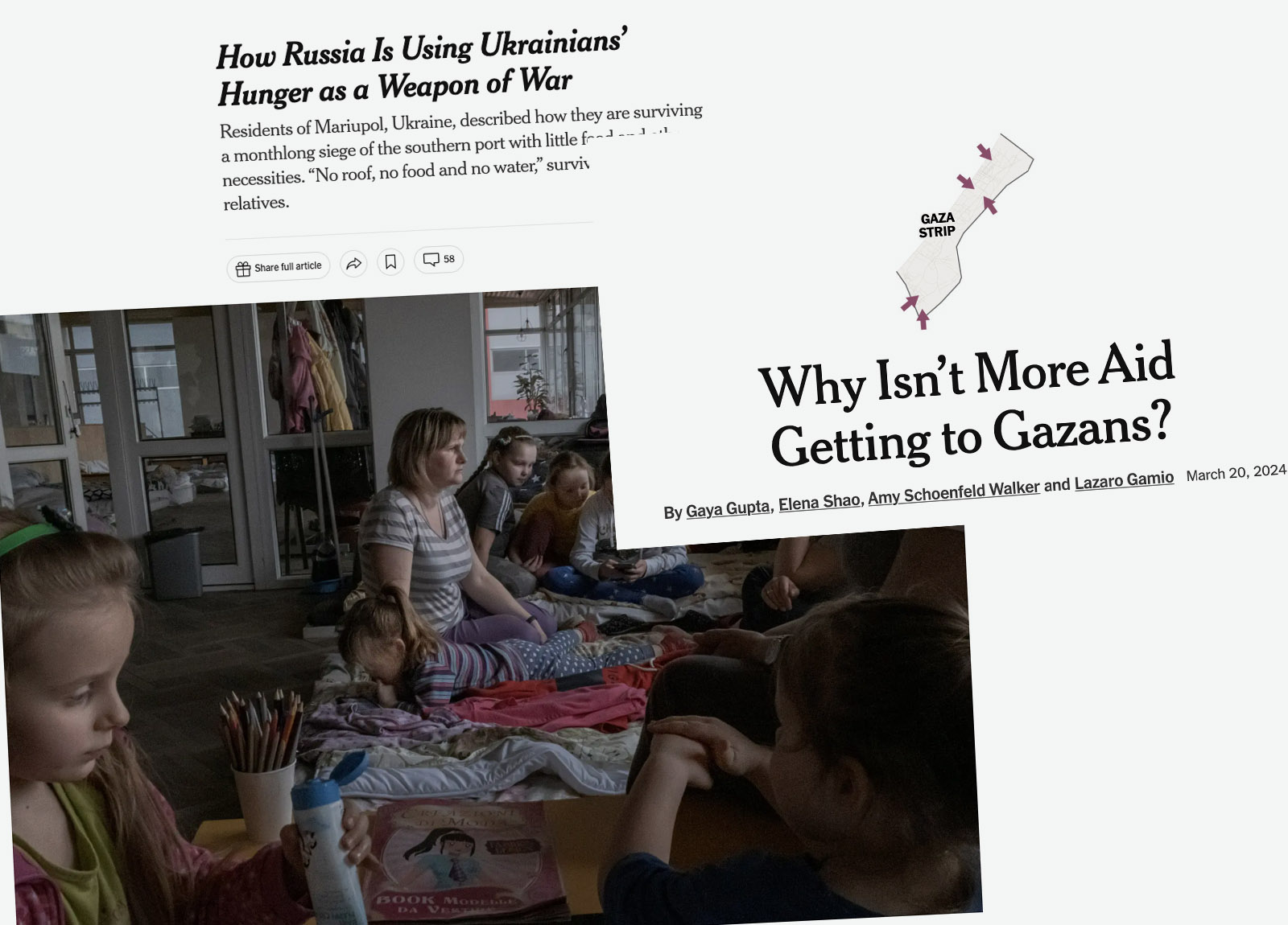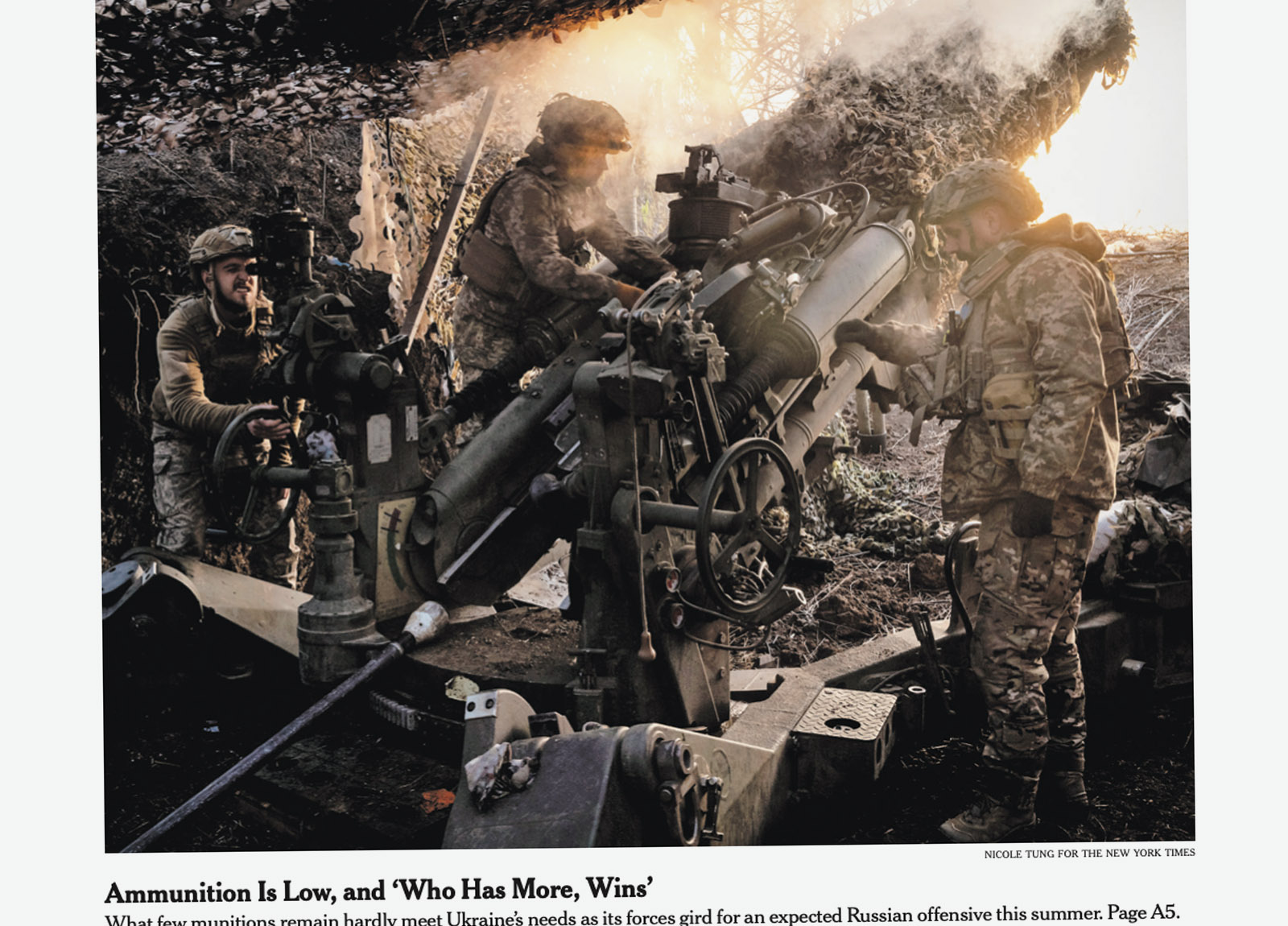 One example from April of this year, “Ukrainians Wait, Nervously, to See if U.S. Will Provide Critical Aid,” has a sub-head that reads, “From the battlefield to battered cities, soldiers and civilians are counting on Congress to approve $60 billion in military support. Without it, Ukrainian officials say, prospects in the war are grim.”