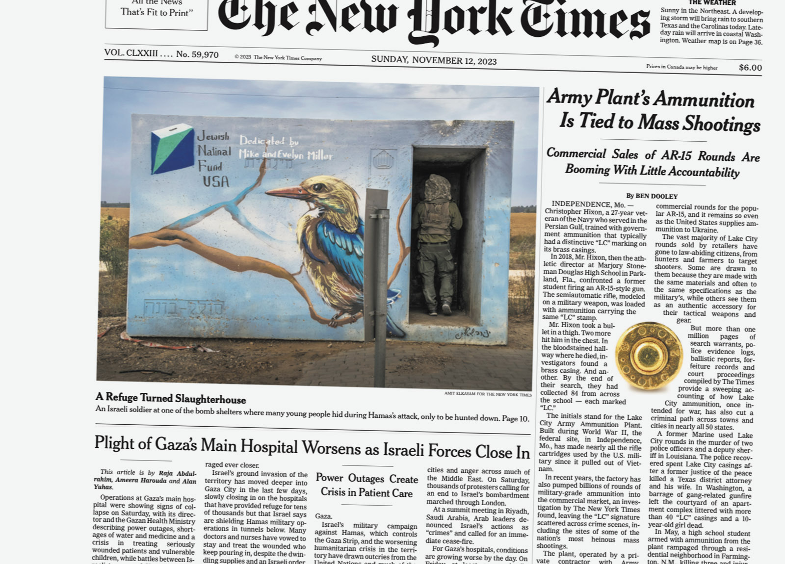 In this front page article [right] from Nov. 1 – the day after Israel dropped 2,000-pound bombs on Jabaliya refugee camp in Northern Gaza, murdering dozens of Palestinians and wounding hundreds more – The Times acknowledges the damage while still providing Israel with an excuse in its headline.