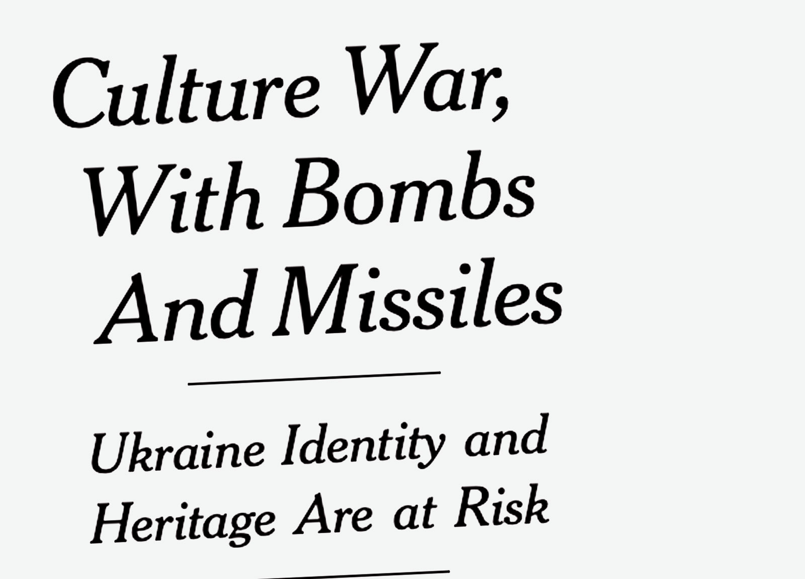 “With Russia actively trying to erase Ukraine’s national identity, this country’s music, literature, movies and monuments are not recreations. They are battlefields. The true culture war of our age is the war for democracy, and Ukrainian culture, past and present, has become a vital line of defense for the whole liberal order.”